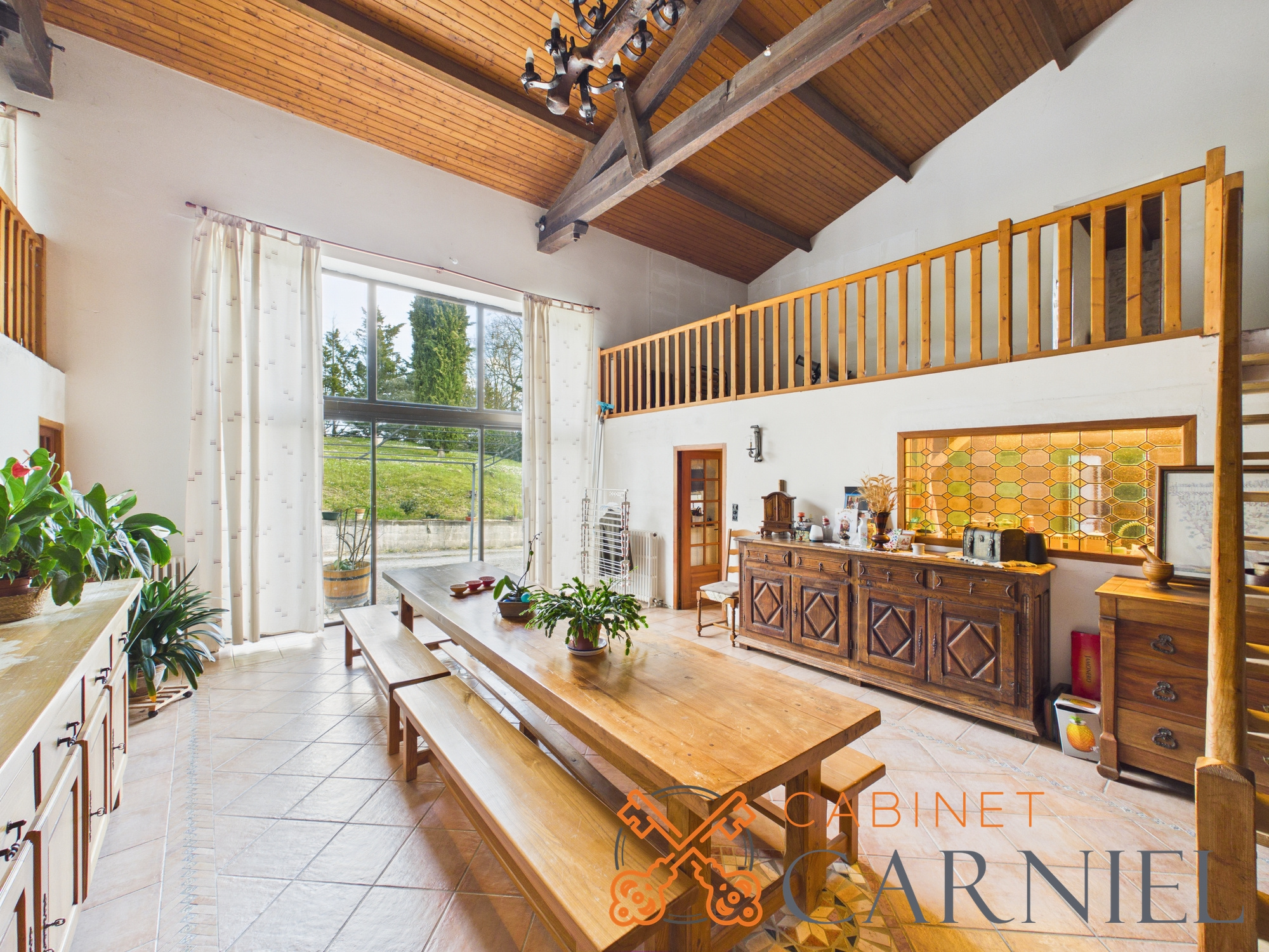 - d'une maison d'habitation de 350m² environ, de 7 pièces : en rez-de-chaussée : cuisine, salon, séjour-salle à manger de 60m², suite parentale (ch + sde), chambre, WC, buanderie, cellier, réserve. A l'étage : mezzanine de 120m², 2 chambres, et un bureau. Chai attenant de 52m².