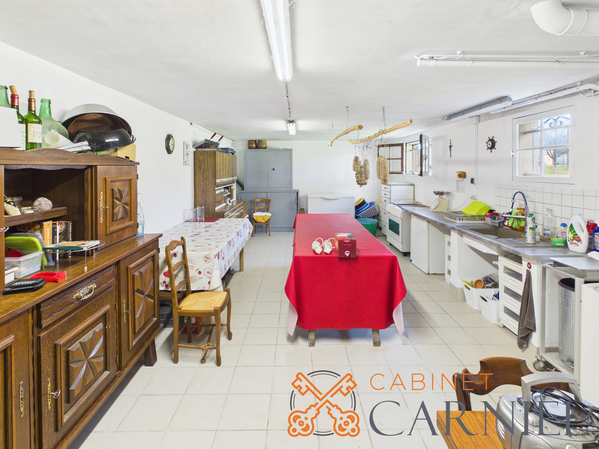 L'atout de cette propriété : son vaste sous-sol couvrant toute la surface de la maison. Il offre de nombreuses possibilités avec son garage, atelier, espace cuisine / laboratoire avec cheminée et des zones de rangement et de stockage